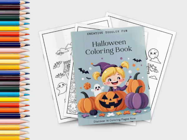 This printable coloring book is designed with big, simple shapes perfect for little hands. Whether your toddler loves pumpkins, friendly ghosts, or silly black cats, each page is made to spark creativity without the overwhelm. Best of all, it pairs perfectly with our no mess Halloween crafts for a fun, stress-free October.